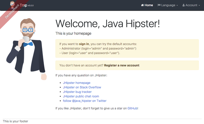 The welcome screen