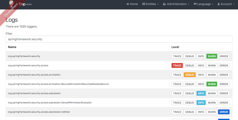 The log management screen