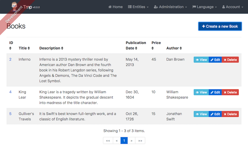The generated "Book" entity